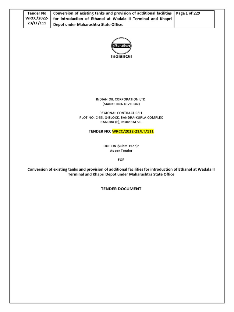 Indian Oil Corporation Ltd Marketing Division Regional Contract Cell Plot No C 33 G Block Bandra Kurla Complex Bandra E Mumbai 51 Pdf General Contractor Prices